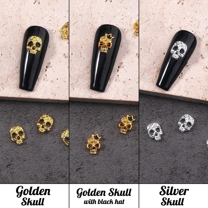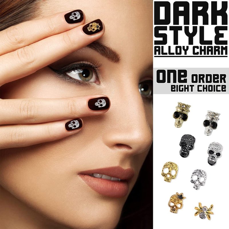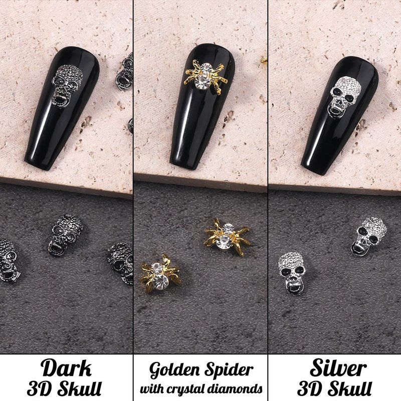 - ✔【Total 40Pcs Punk Nail Art Charms & Halloween Nail Art】You will receive 40 pcs cool gold / silver /black nail ornaments in 8 style skull / spider. Each style has 5 pieces, enough for you to use in the party or daily life, you can also share it as a gift with your family and friends. Our nail art jewelry is designed with the elements of Halloween with vivid image and scary feeling, to make you and your nails look mysterious and brilliant in any parties or occasions.
