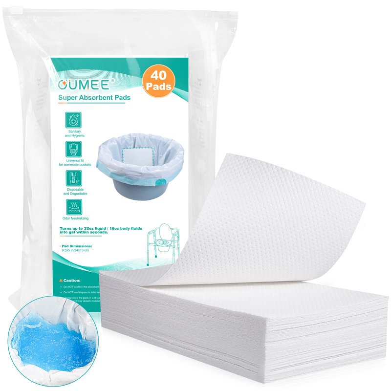 - 🌊5-Layer Super Absorbent Commode Pads - Oumee super absorbent pad is designed with 5-layer structure and equipped with SAP water-absorbing polymer substance that can instantly absorb urine or other liquids, and turns up to 35oz(1000ML) liquid maximum/16oz(450ML) body fluids into gel within seconds.