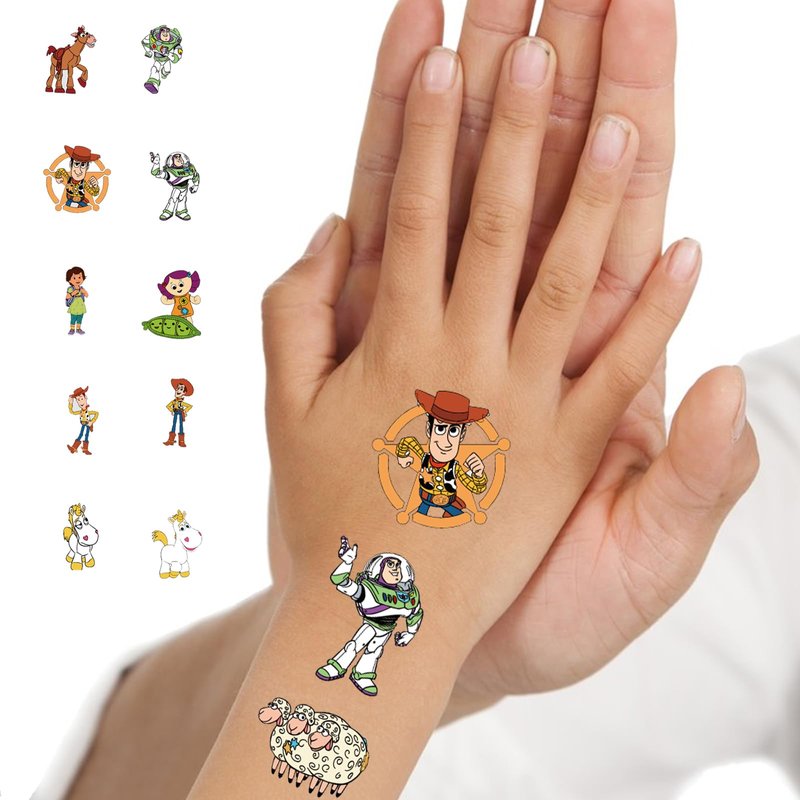 40 Pcs Toy Inspired Story Temporary Tattoos - 2x2 Inch Pre-Cut Designs for Birthday Party Favors, Supplies, Decoration, Kids' Gifts, and School Rewards