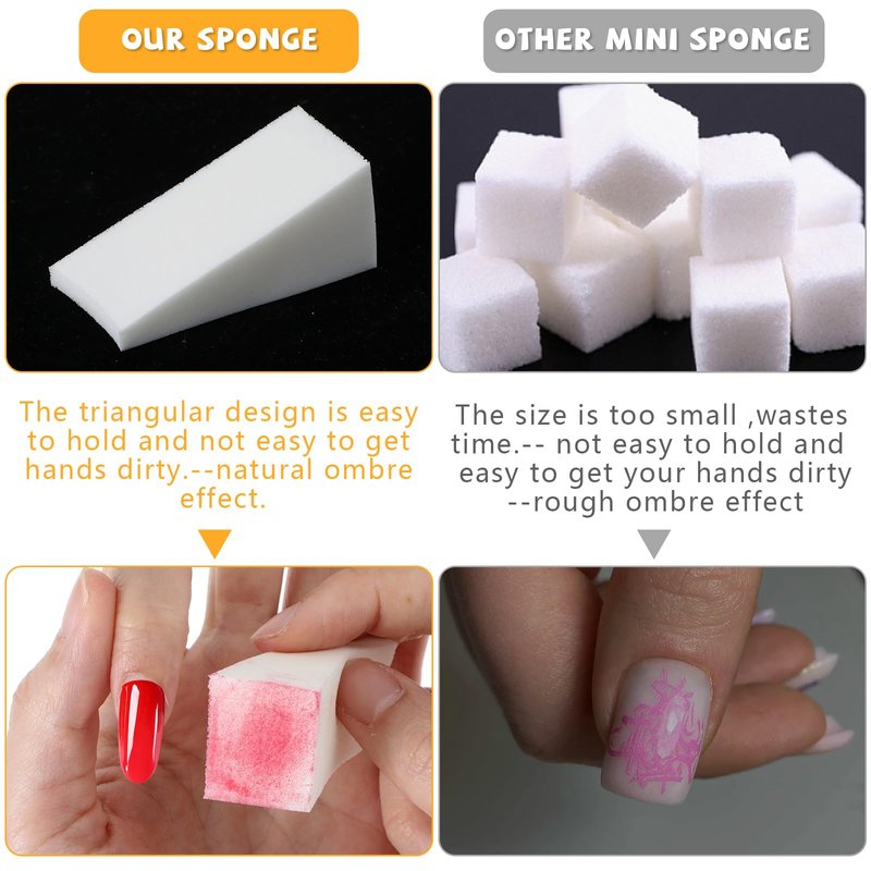 - 【Easy to Carry】Each ombre nail sponge measures 5×2×2cm/2×0.8×0.8inch, which is exquisite, compact and easy to carry. Mini nail art sponge are perfect for gradient nail designs and halo nail art and are easy to use and store.