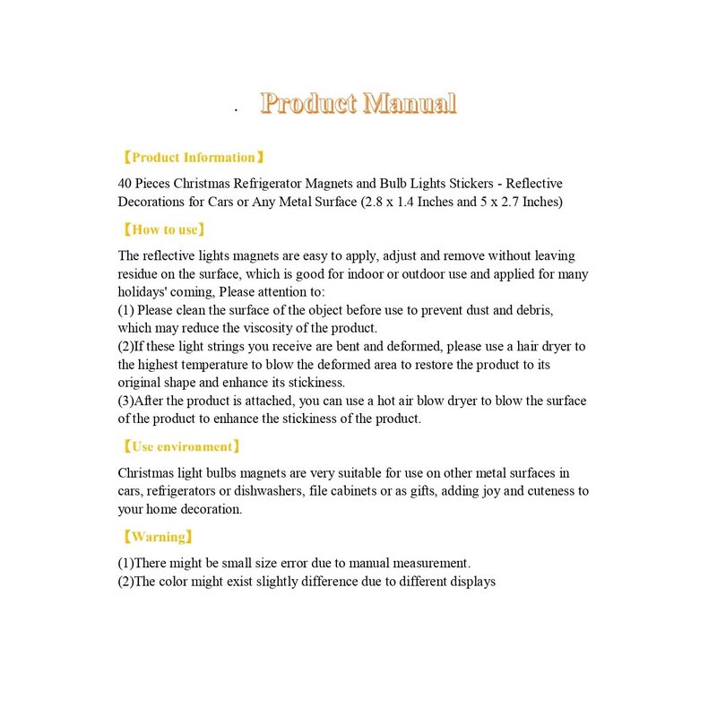 - Multiple uses: these reflective bulb light magnets can be applied on other metal surfaces in cars, refrigerators or dishwashers, file cabinets, etc., enhancing colorful and bright atmosphere in holiday; They are also nice gifts for your friends, relatives and colleagues to help their car or house more attractive