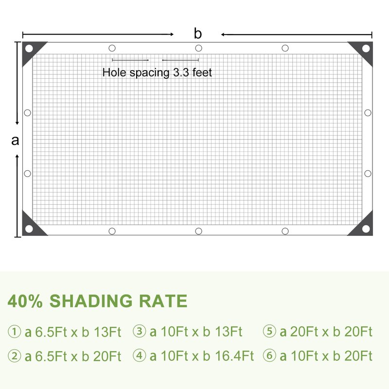 40% Shade Cloth Greenhouse Shade Cover with Grommets - Mesh Tarp for Pergola, Patio Plants, Chicken Coop, Garden, Outdoor, Backyard (6.5Ft x 13Ft)