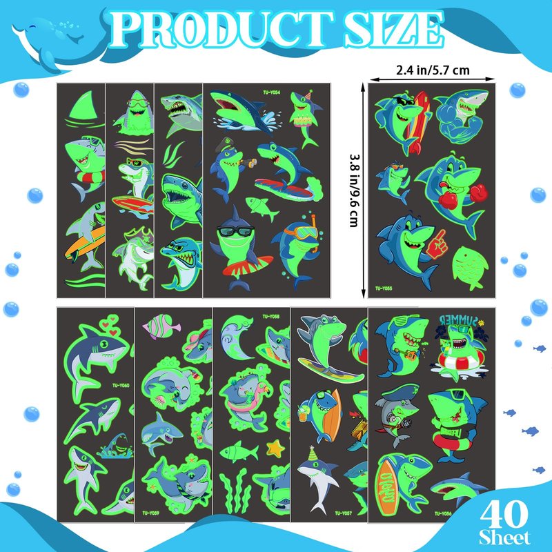 40 Sheets (280 PCS) Luminous Sharks Temporary Tattoos for Kids, Sea Animal Tattoos Stickers Shark Ocean Birthday Party Favors Supplies, Gifts for Shark Goodie Bag Stuffers
