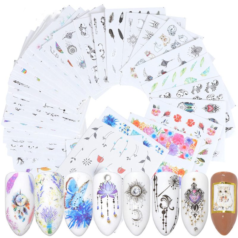 - 【Quantity】You will get 40 sheets amazing nail water transfer decals, each paper measure 2.52 x 2.08 inches(6.3 x 5.4 cm). Contains 40 beautifully designed patterns, these flower nail stickers are perfect for matching other nail art. You can DIY design your own nails style.