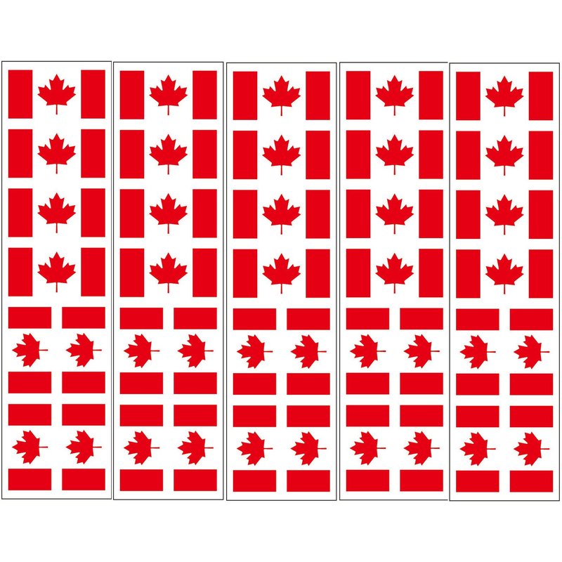 One order = 5 sheets. Each sheet features 8 Canada Flags (4 are 4.5 cm width, 4 are 3cm width) so you receive a total of 40 temporary tattoos. Premium quality, rich colors last for days (depends on your skin). These are applied with water and are waterproof. Don't waste your money on small, poor quality tattoos that don't stick to your skin or only last an hour! Great for Canadian parties!