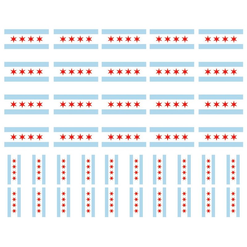 Each order = 5 sheets (40 temporary tattoos) featuring 8 Chicago Flags (4 are 4.5 cm width, 4 are 3cm width.) Premium quality, rich colors last for days (depends on your skin). These are applied with water and are waterproof. Great for Chicago events!