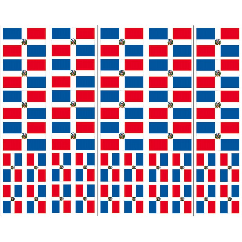 One order = 5 sheets. Each sheet features 8 Dominican Republic Flags (4 are 4.5 cm width, 4 are 3cm width) so you receive a total of 40 temporary tattoos. Rich colors last for days (depends on your skin). These are applied with water and are waterproof. Great for DR parties!
