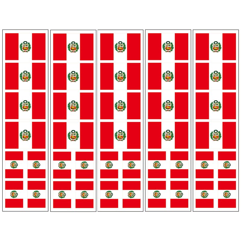 One order = 5 sheets. Each sheet features 8 Peru Flags (4 are 4.5 cm width, 4 are 3cm width) so you receive a total of 40 temporary tattoos. Rich colors last for days (depends on your skin). These are applied with water and are waterproof. Great for Peruvian parties! Note the images above may be "mirrored". The flag will be backwards on the sheet; when you apply it to your body the image will flip and display properly.