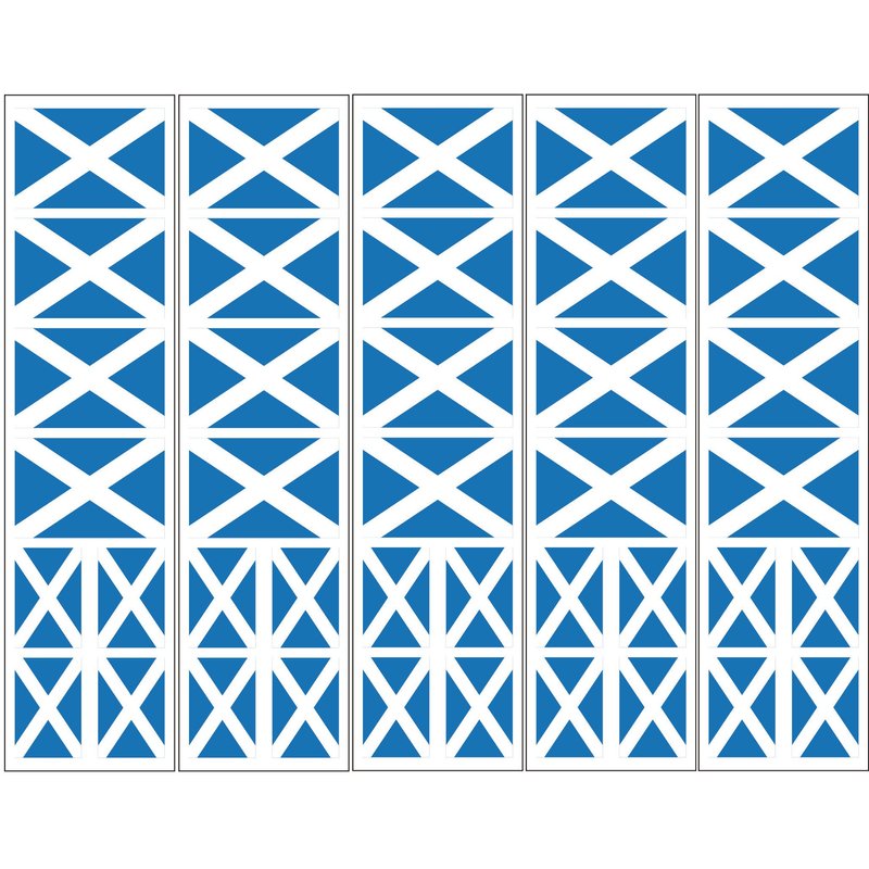 One order = 5 sheets. Each sheet features 8 Scottish Flags (4 are 4.5 cm width, 4 are 3cm width) so you receive a total of 40 temporary tattoos. Rich colors last for days (depends on your skin). These are applied with water and are waterproof. Great for Scotland parties!