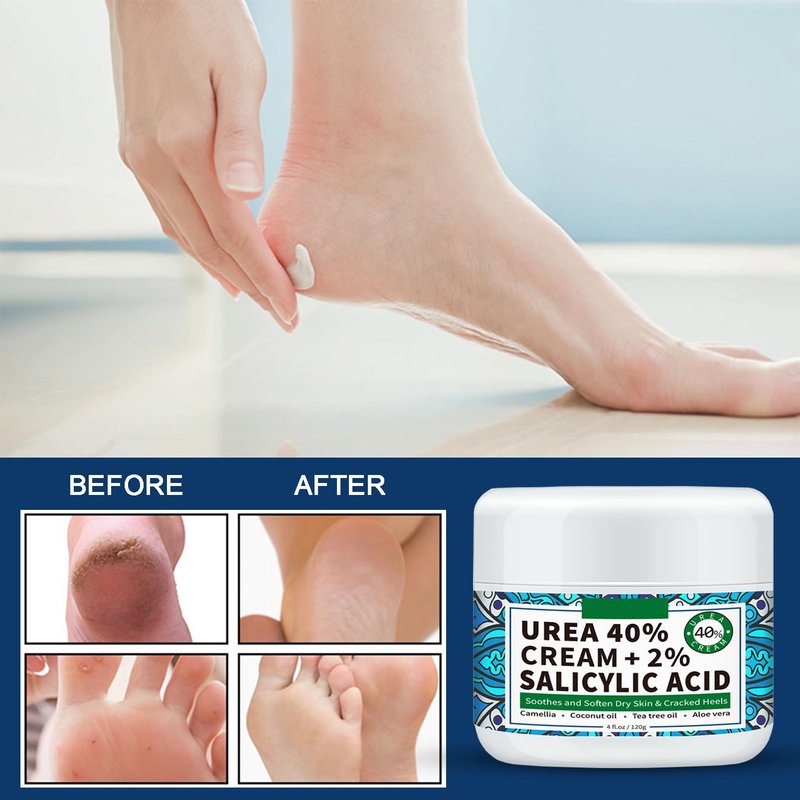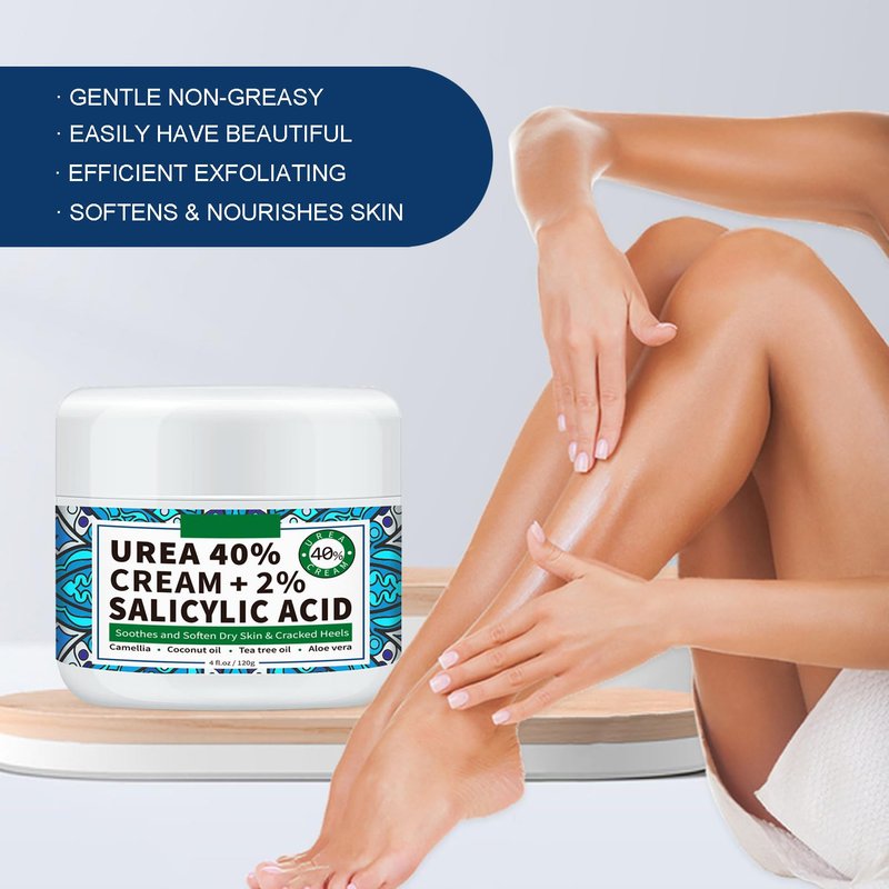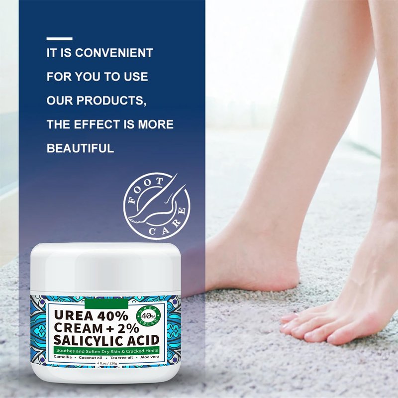 Our 40 percent urea cream is enriched with 40% urea + 2% Salicylic Acid, quickly softening calluses and moisturizing dry and cracked skin.