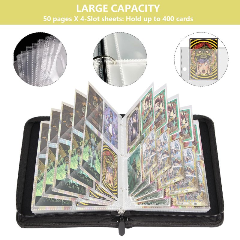400 Card Binder Pockets, Trading Card Binder with Sleeves, Baseball Card Binder, Trading Card Albums Sports Card Binder Collectible Fits 400 Cards with 50 Removable Sleeves