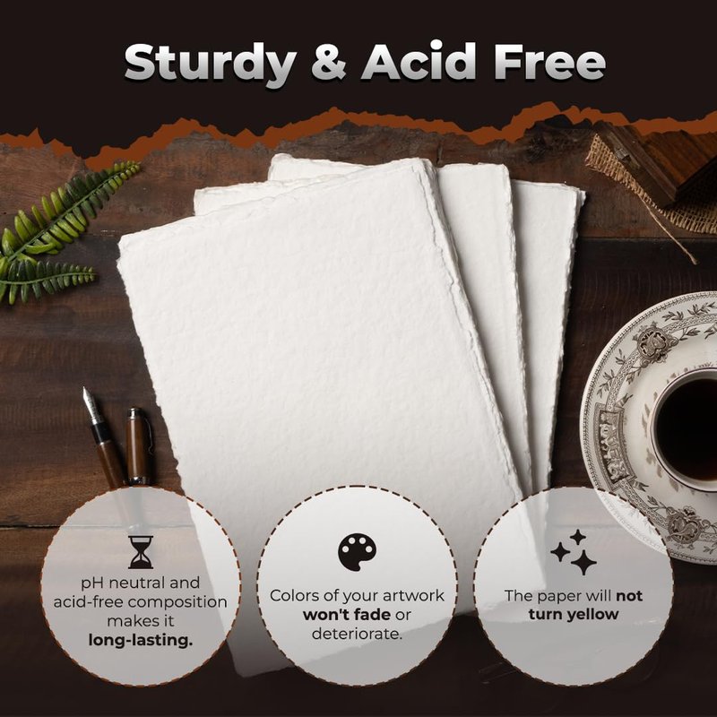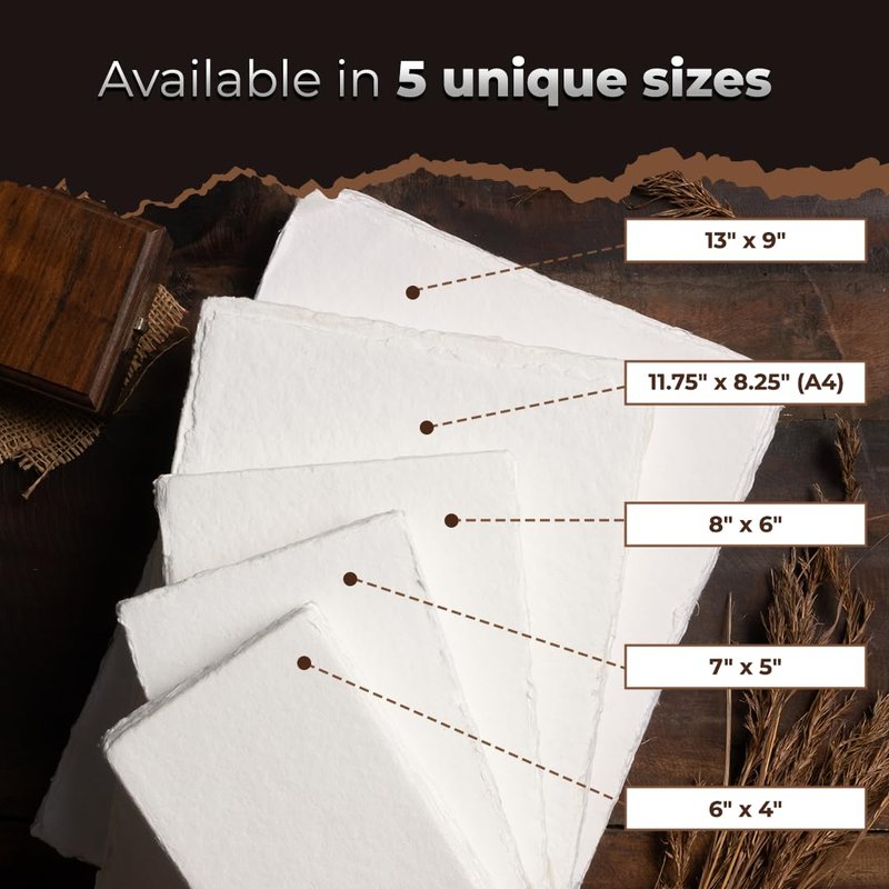 - TIMELESS KEEPSAKE WITH ADDED ASSURANCE: Fill these handmade paper sheets with your beautiful drawings, and it becomes a cherished keepsake that will endure for decades. Crafted from 100% virgin cotton and boasting a substantial 400 GSM, it ensures no bleed-through at all, preserving your artwork with utmost clarity. We offer a 3-year guarantee, providing you with additional assurance and peace of mind.