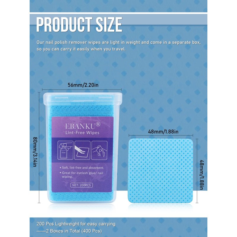 400PCS Lint Free Nail Wipes Glue Wipes Lash Extensions EBANKU Soft Blue Lash Glue Nail Polish Remover Cotton Pads Eyelash Extension Supplies