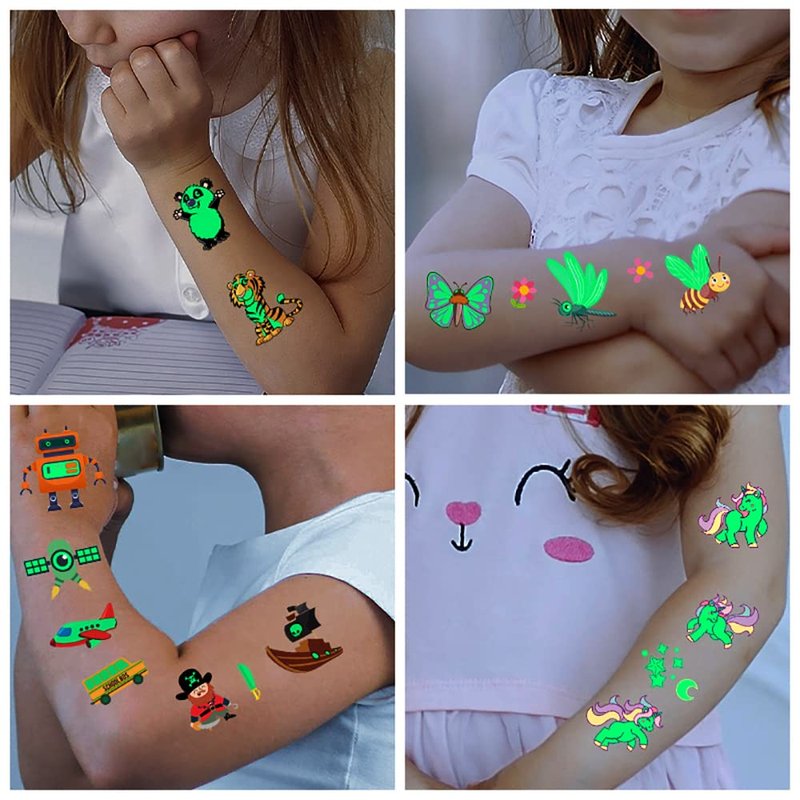 400pcs Luminous Tattoos For Kids,Mixed Styles Temporary Tattoo Stickers,Glow In The Dark Tattoos for Boys and Girls,Unicorn Mermaid Dinosaur Butterfly Fake Tattoos or more party makeup gifts 30 Sheets