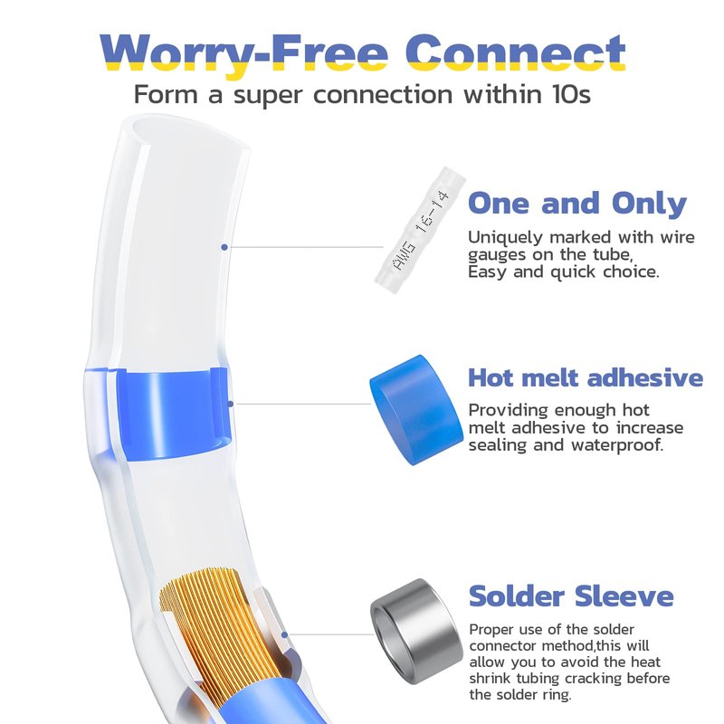 - PREMIUM SOLDER SEAL RING:The enough solder around the wire,Melt and flow until form seal on the wire.Ensure a long lasting connection especially if making a larger connection.