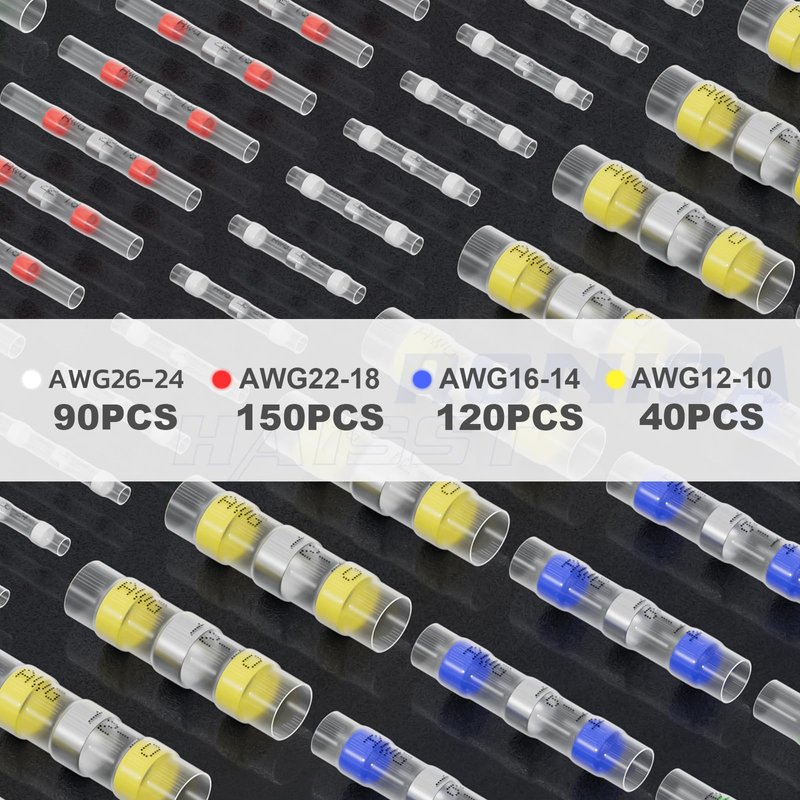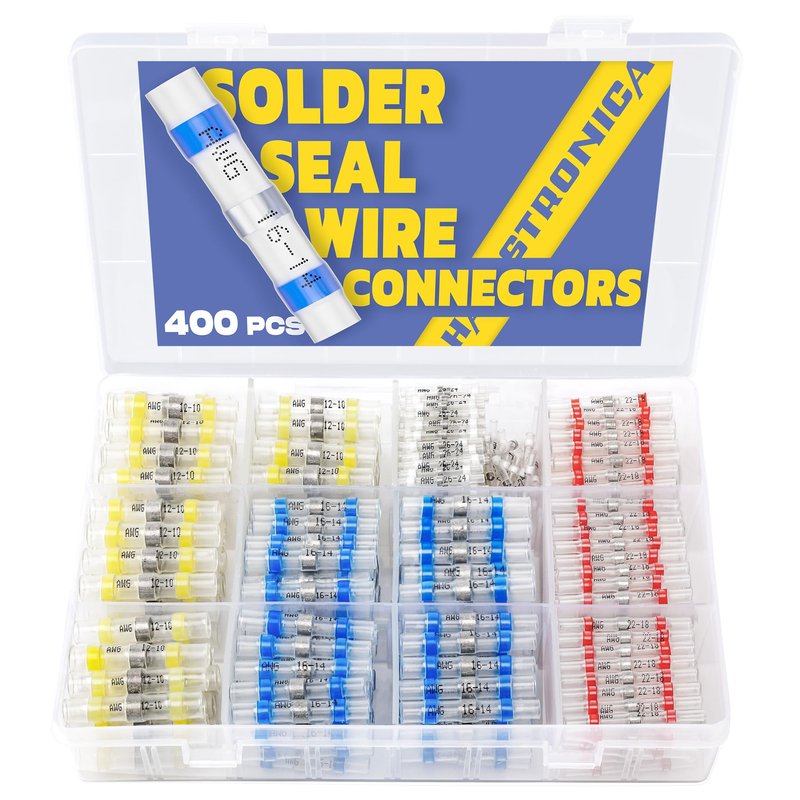 400PCS Solder Seal Wire Connectors-haisstronica Waterproof Heat Shrink Butt Connectors-Self Solder for Marine,Aircraft,Boat,Truck,Stereo,Joint