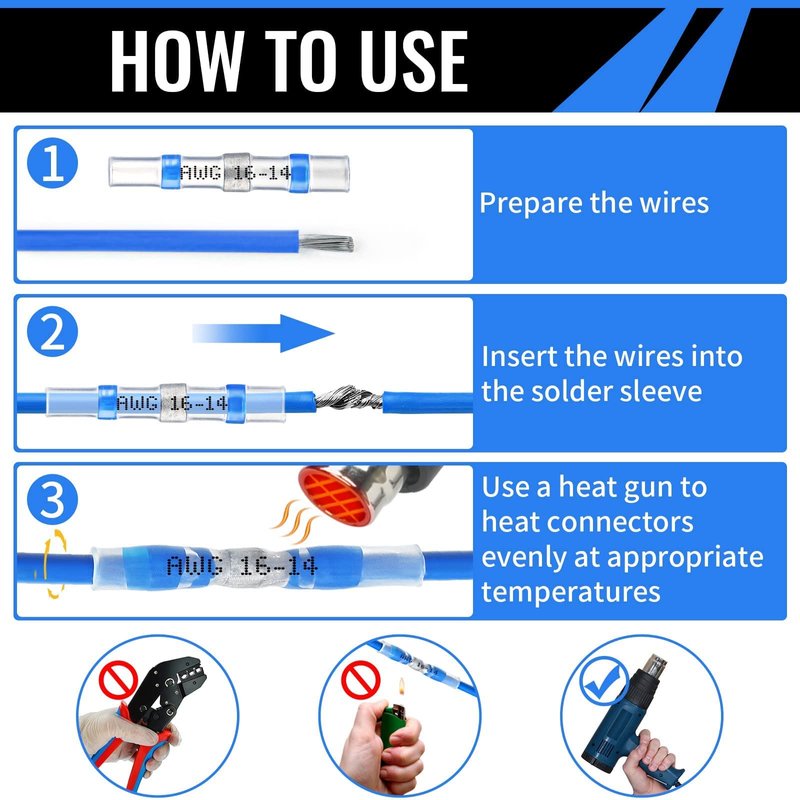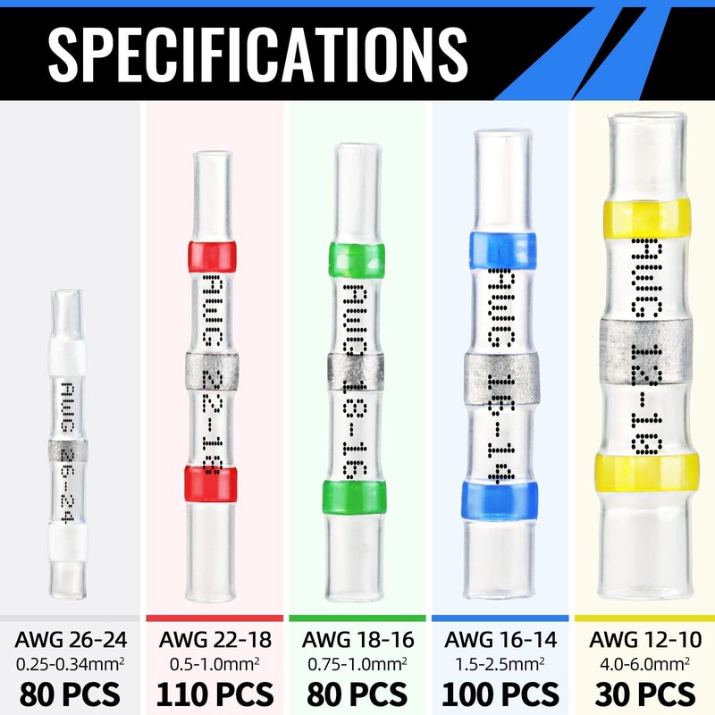 - ♥ BETTER WATERPROOF SOLUTIONS: Double wall design, Hot Melt Adhesive inside ensures wires strongly connected and prevent wires slipping from the terminal; Polyolefin outside tubing provides insulation and improves pullout strength.