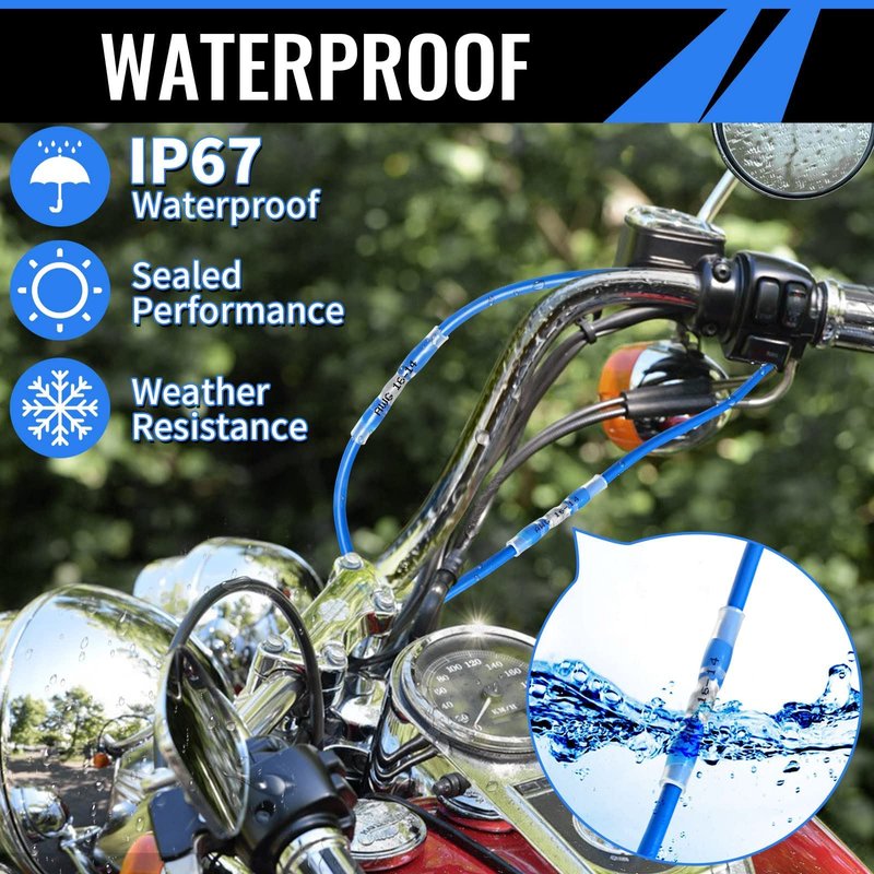 - ♥ WIDE APPLICATIONS: Excellent stability, water resistance and electrical conductivity provide durable connection for motorcycle, off-road vehicles, lawn tractors, RVs, fish finder and marine application. Widely used on multiple projects of your Christmas lights, ships with high waterproof requirements motorcycle stereo, boat electronics, equipment switches.