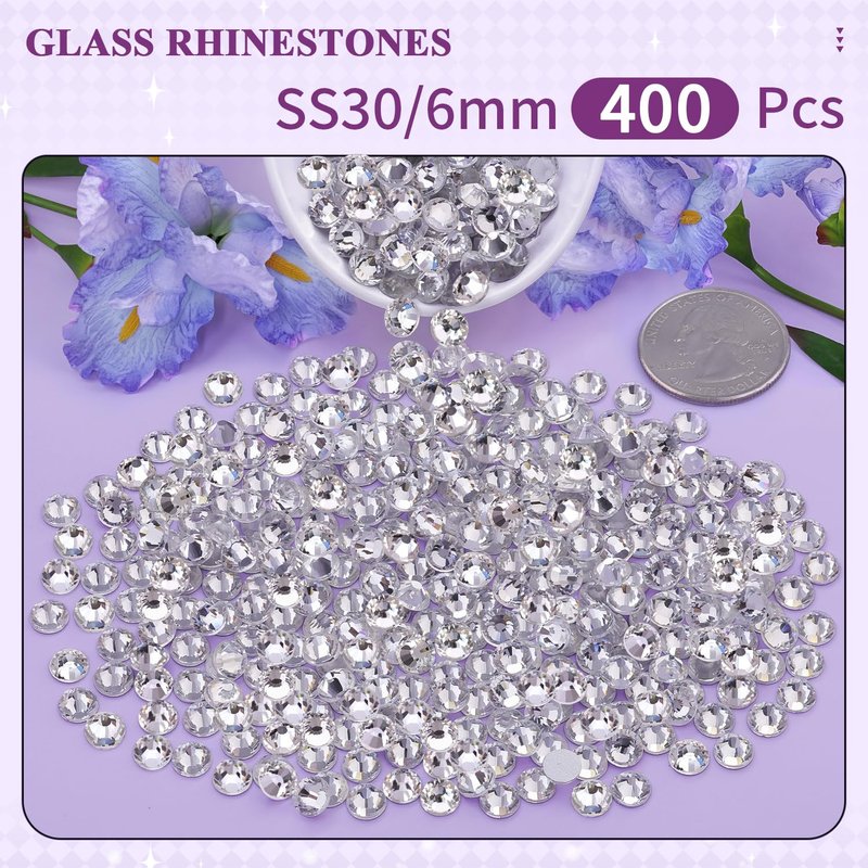 400PCS SS30/6mm Crystal Rhinestones (Clear), Bedazzling Flatback Glass Rhinestones for Crafting DIY Nail Art Makeup Decoration, Gems Diomand Charms for Tumbler Shoes Clothing Mug