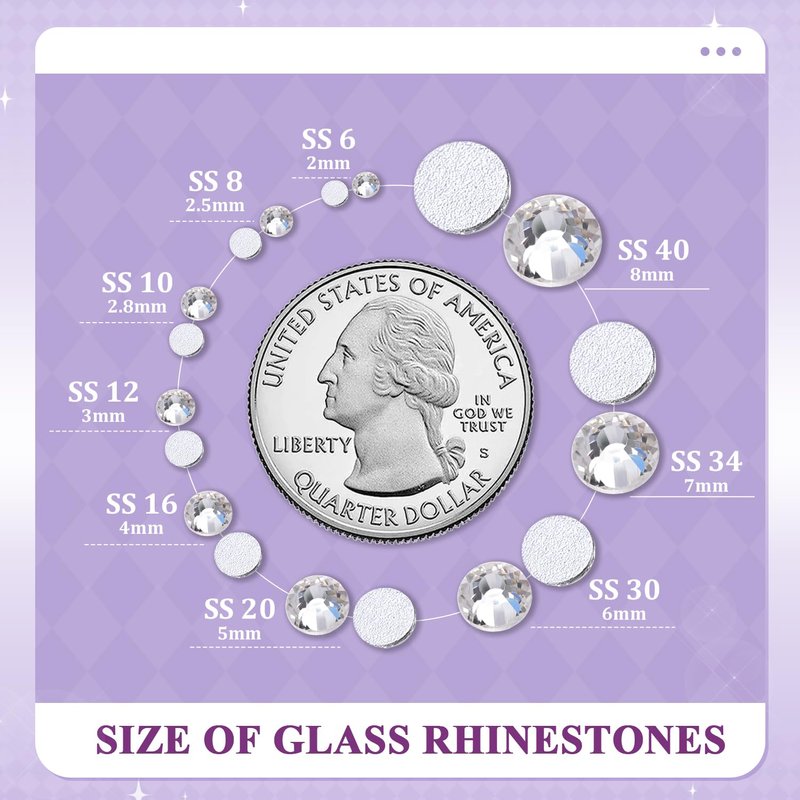 - 💎ONE-STOP PURCHASING -- The rhinestones are packed by weight, with each pack containing approx. 400 pcs. Our store offers a variety of colors and sizes of Glass rhinestones for your one-stop purchasing. By choosing glass rhinestones with similar or contrasting colors, you can create color-coordinated or highly contrasting works, such as phone cases with gradient effect or colourful festival decorations.
