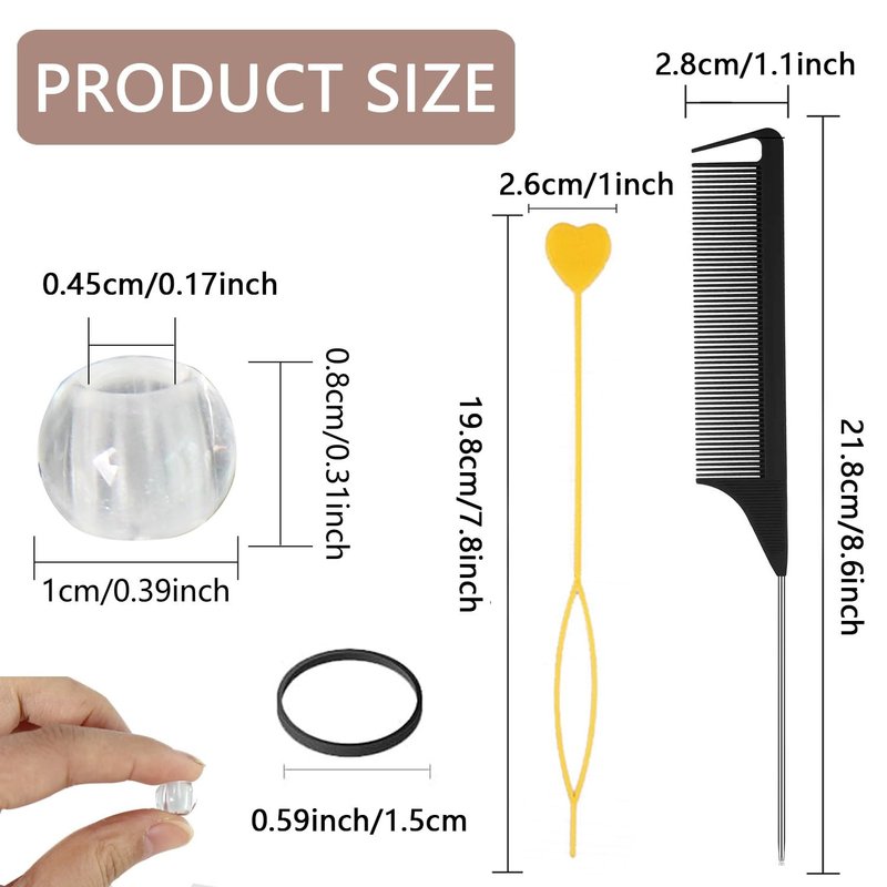 - ✿Hair Braids Set:The hair beads set for braids for girls contains with 200pcs 8x10mm clear hair beads,5pcs quick beader,200pcs black elastic rubber bands and 1pc rat tail comb;Perfect for hair braiding.Enough quantity and colors can meet your different DIY production needs.