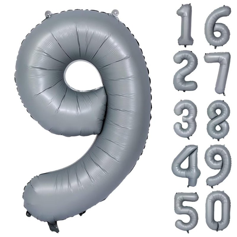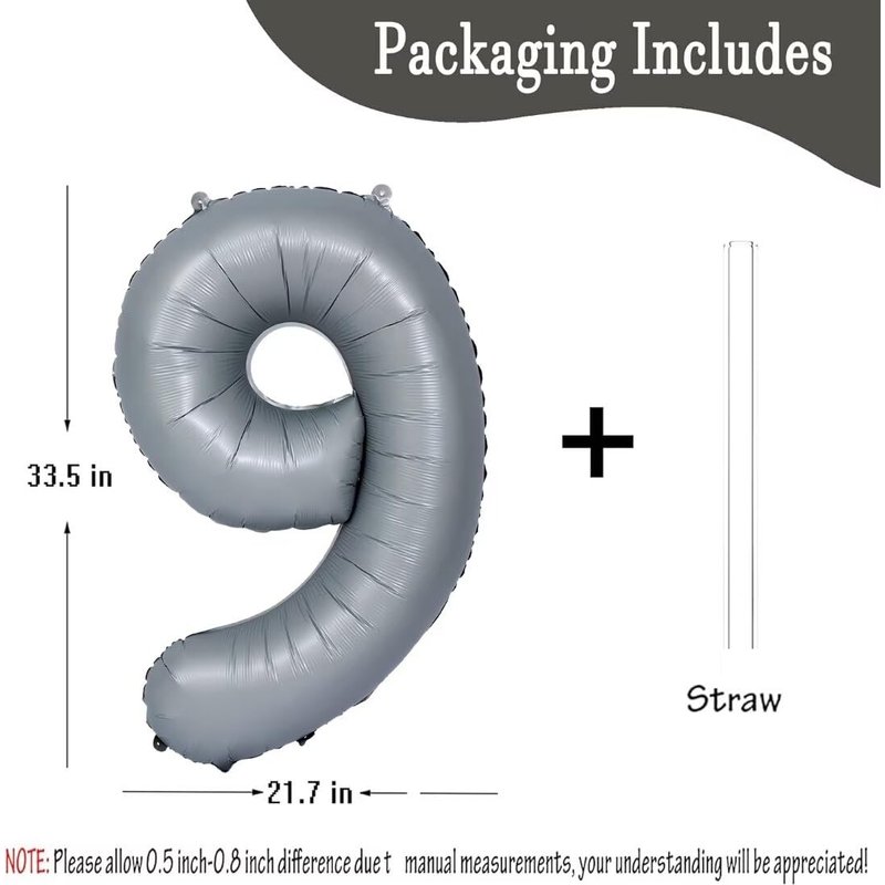 40in Gray Number 9 Balloons Big Foil Mylar Party Balloons for Girls Boys 9th Birthday Party Decorations Supplies