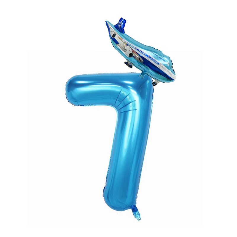 - Includes: 1 pcs 40inch blue number 7 balloon, 1pcs 17×34inch airplane balloon 1pcs straw, 20 glue dots