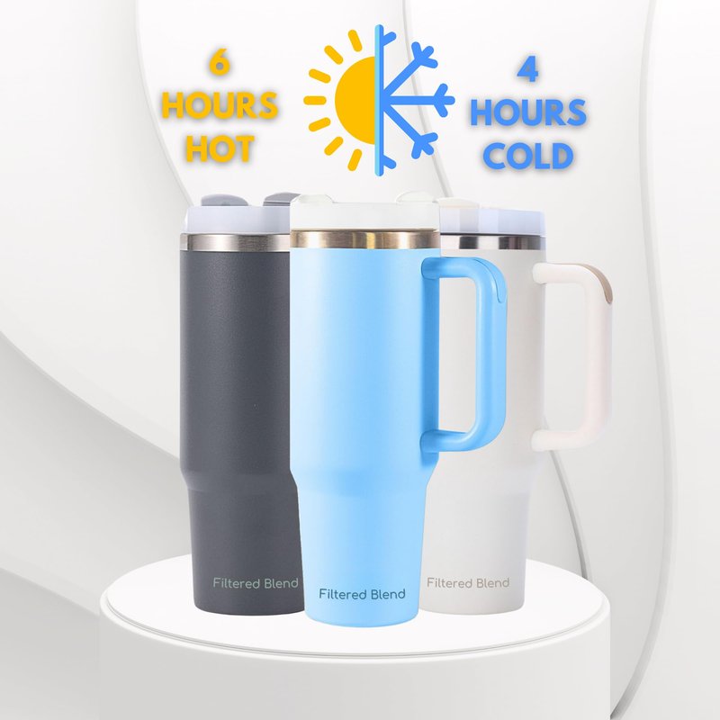 - KEEPS DRINKS HOT AND COLD: Our 40oz stainless steel tumbler is perfect for keeping your drinks hot or cold for hours. Enjoy your favorite beverages, whether hot coffee or iced tea, until the last sip. Say goodbye to disposable bottles and choose this eco-friendly, reusable option.