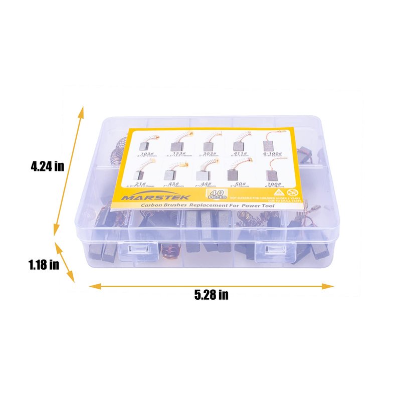 - 【Package Contains】:40Pcs 10 sizes carbon brushes, each size 4Pcs(7x17x19mm, 5x11x18mm, 6.5x7.5x13mm, 6.5x13.5x18mm, 6x10x17mm, 6x9x14mm, 7x11x18mm, 6x8x14mm, 5x8x13mm 5x8x15mm).