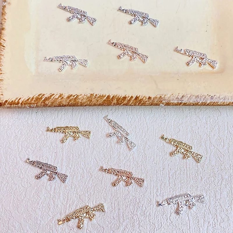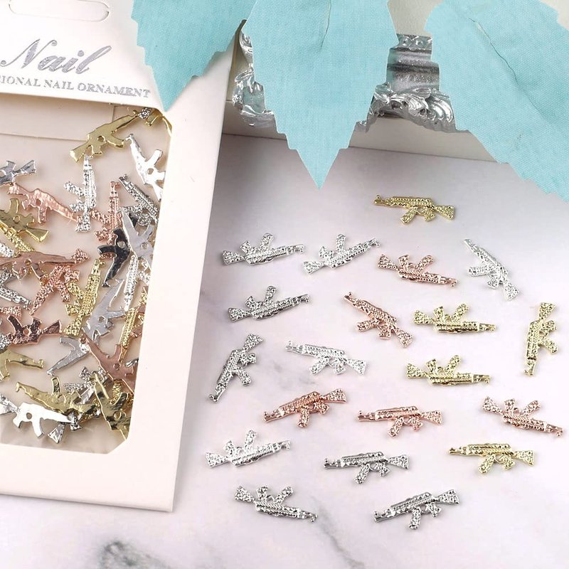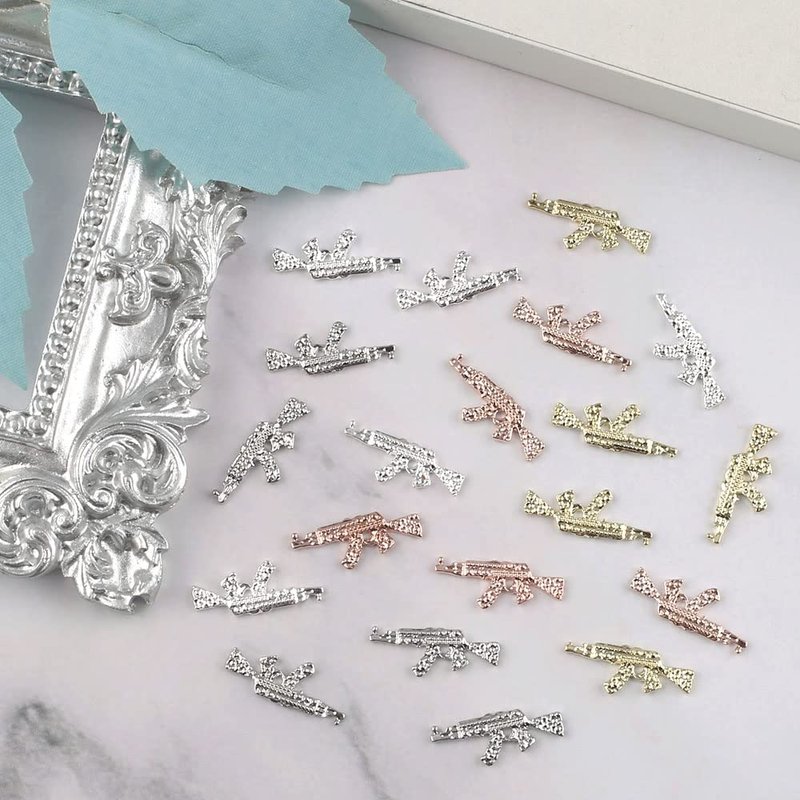 - 【40pcs Gun Nail Charms】You will receive 40 pieces gun nail art charms in four colors: silver, silver white, gold and rose gold. Each color is 10 pieces, there are 10pcs of each colour, giving you sufficient quantity accessories to suit your different nail art needs.
