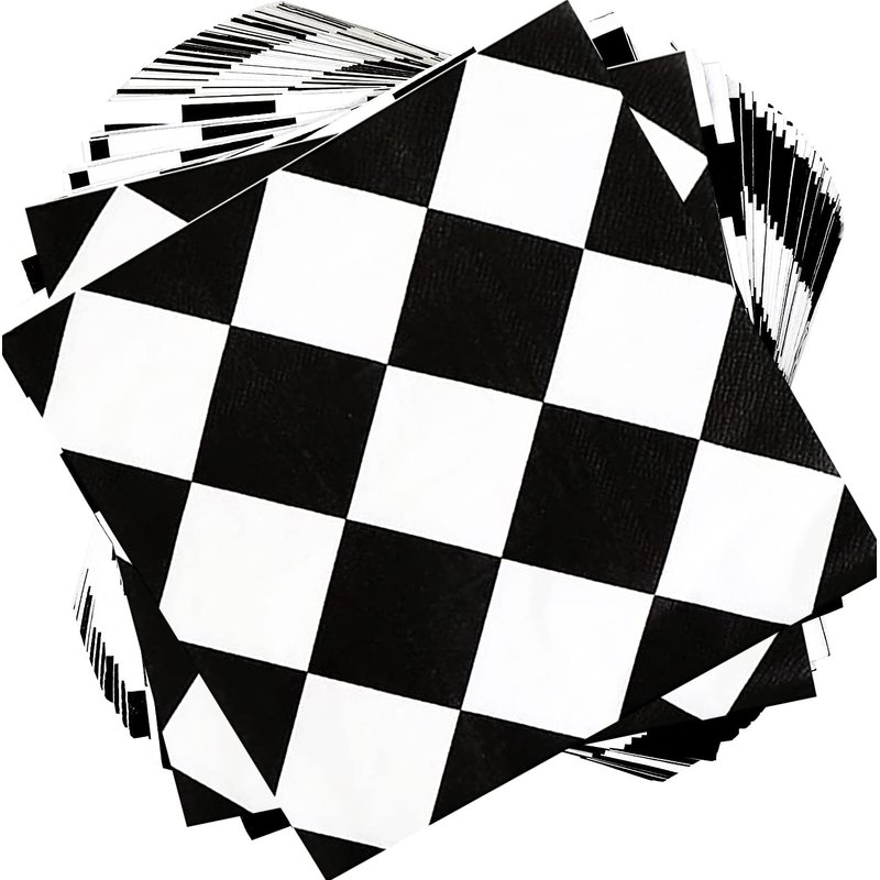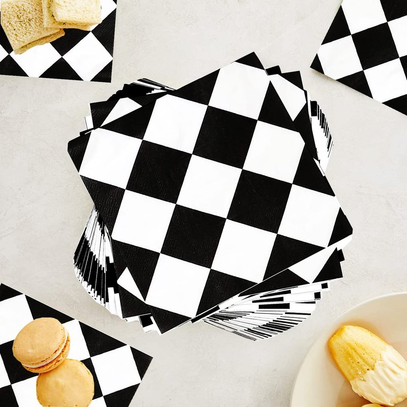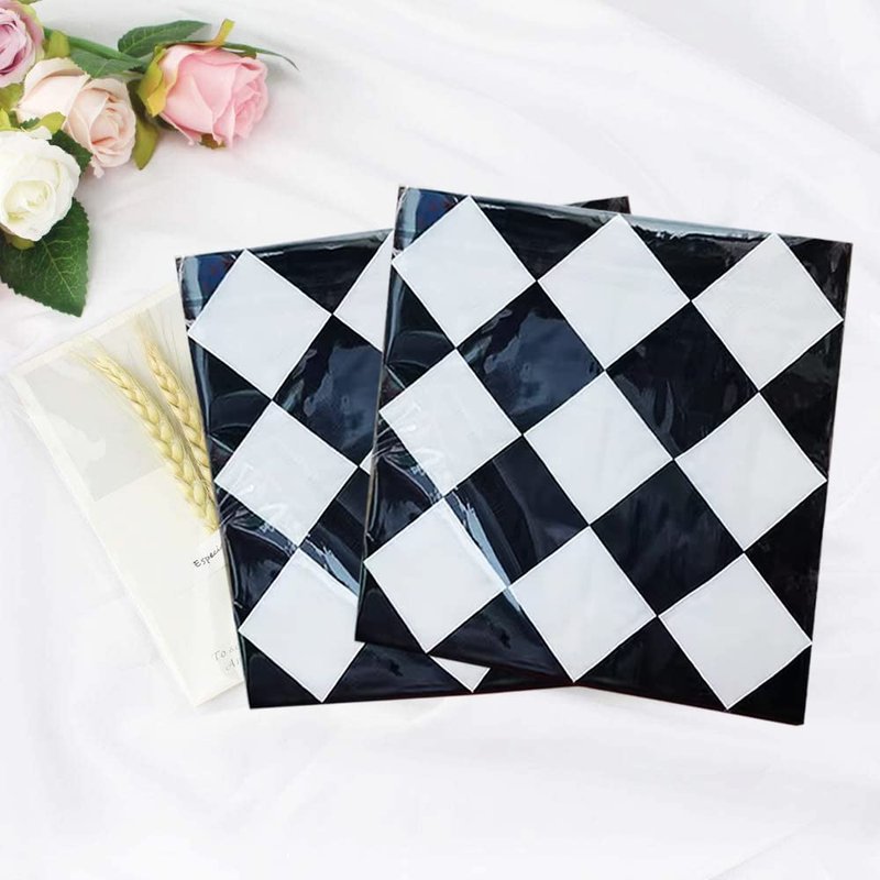- 【Black & White Party Decoration】:black and white checkered disposable paper napkins is the perfect choice for almost any occasion.Beautify any table setting with our napkins,suitable for birthdays,weddings,baby showers,racing theme party,holidays,cocktail evenings,luncheons,or buffets,black and white checkered flag race car themed party,outdoor use,picnic,camping or hiking.