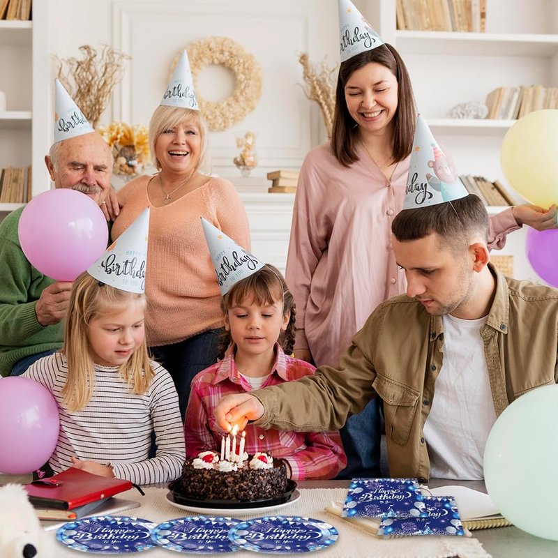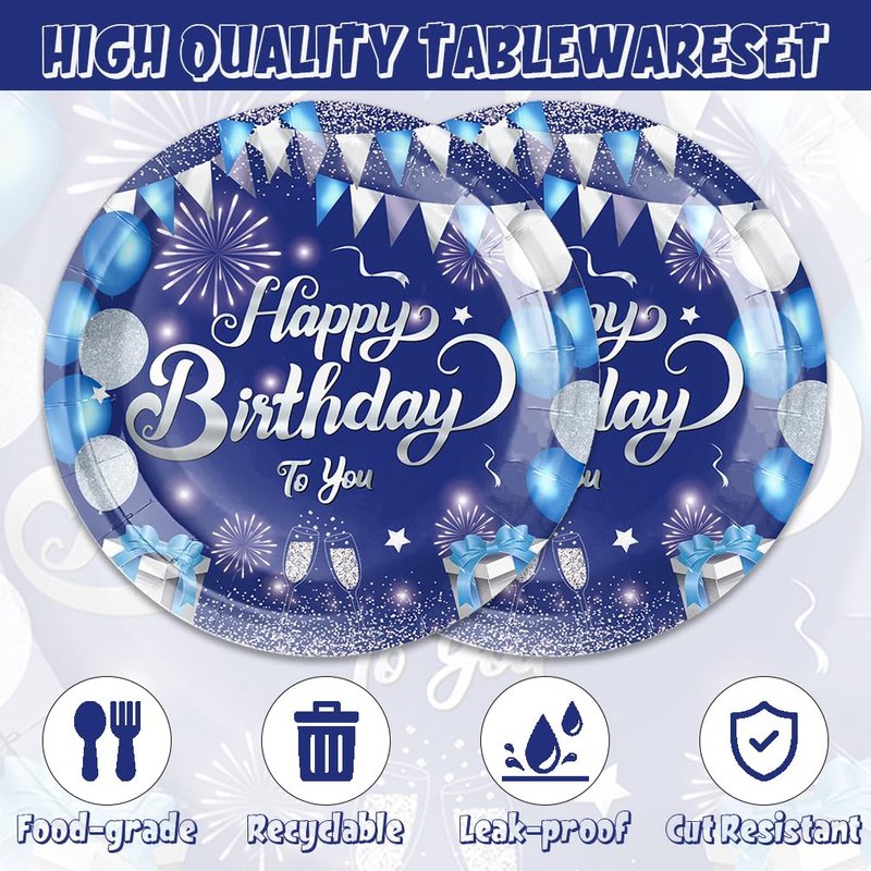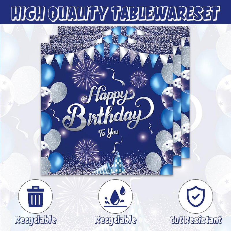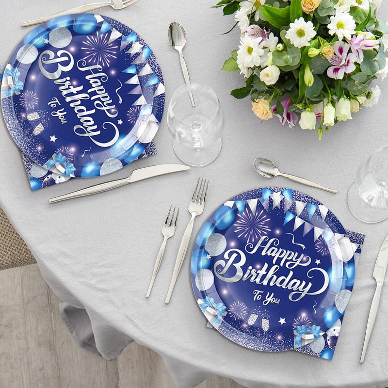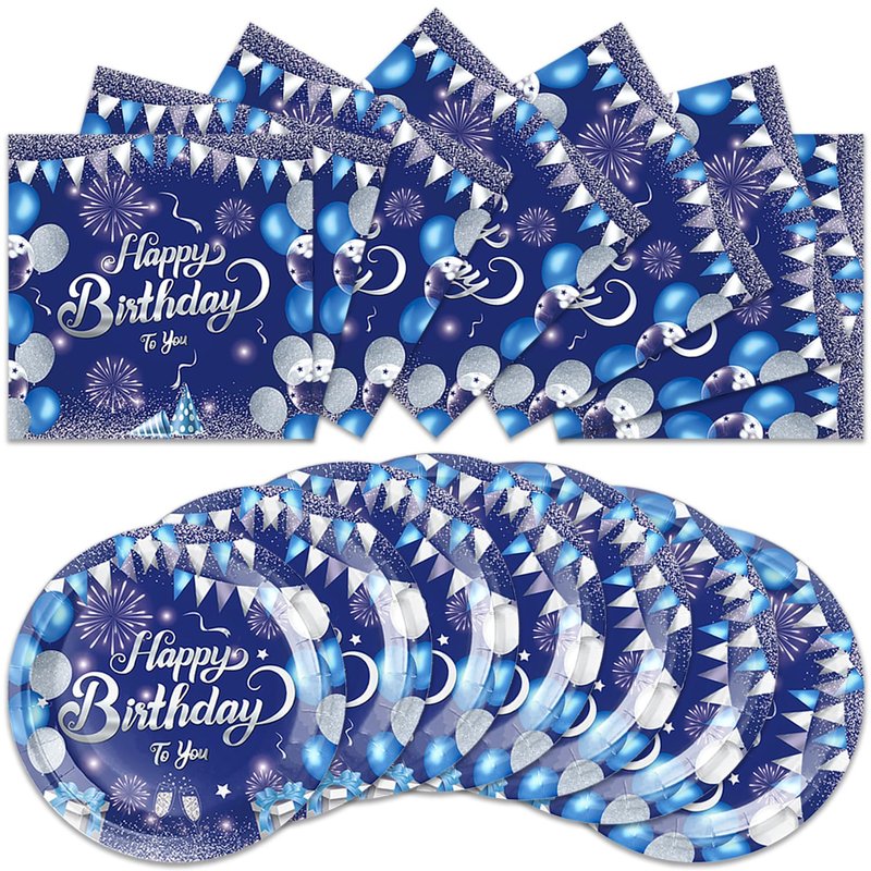- Birthday party includes: 20 7-inch blue birthday plates and 20 6.7-inch blue birthday napkins;A total of 40 birthday party supplies, each set can accommodate 20 guests.