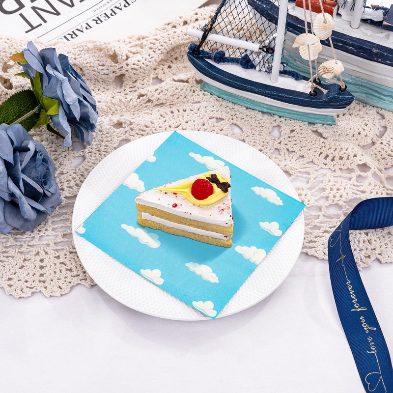 - 【BLUE SKY AND WHITE CLOUDS NAPKIN】: our disposable paper napkin is designed with the theme of blue sky and white clouds, which is simple and clear. It has a unique and charming appearance that stands out from the crowd. This ingenious wood pulp napkin not only has cleaning function, but also a practical decoration, making your party unique and stylish, adding beauty.