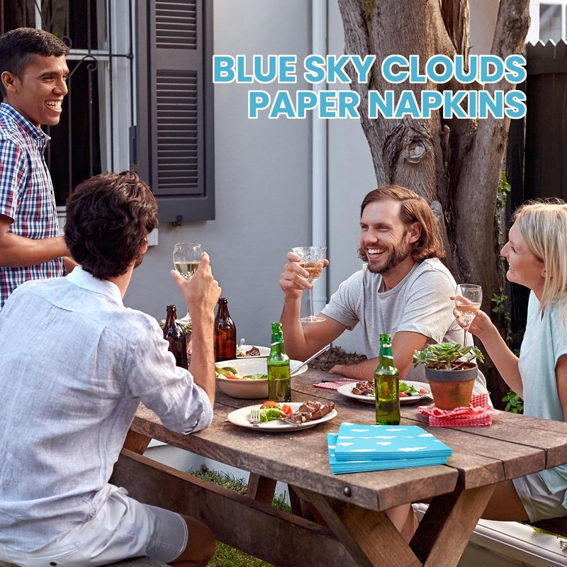 - 【PREMIUM QUALITY MATERIAL】:Blue Sky White Cloud napkins are made from virgin wood pulp, which is highly absorbent, soft and comfortable. This carefully selected material means you can use them without worrying about easy tearing. Suitable for use in the kitchen, living room, dining room or anywhere you like.