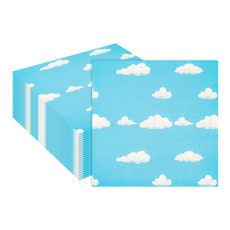 40PCS Blue Sky Clouds Napkins - Folded 6.5 x 6.5 Inches Luncheon Napkins Disposable Paper Napkins Party Supplies for Kids Cartoon Story Theme Birthday Kids Baby Shower Outdoor Camping