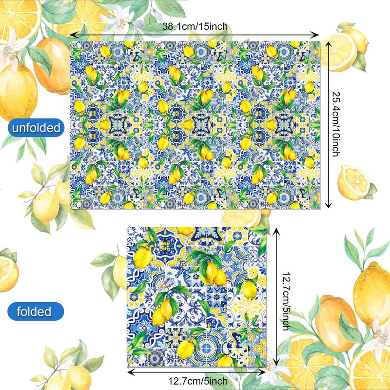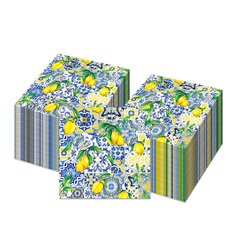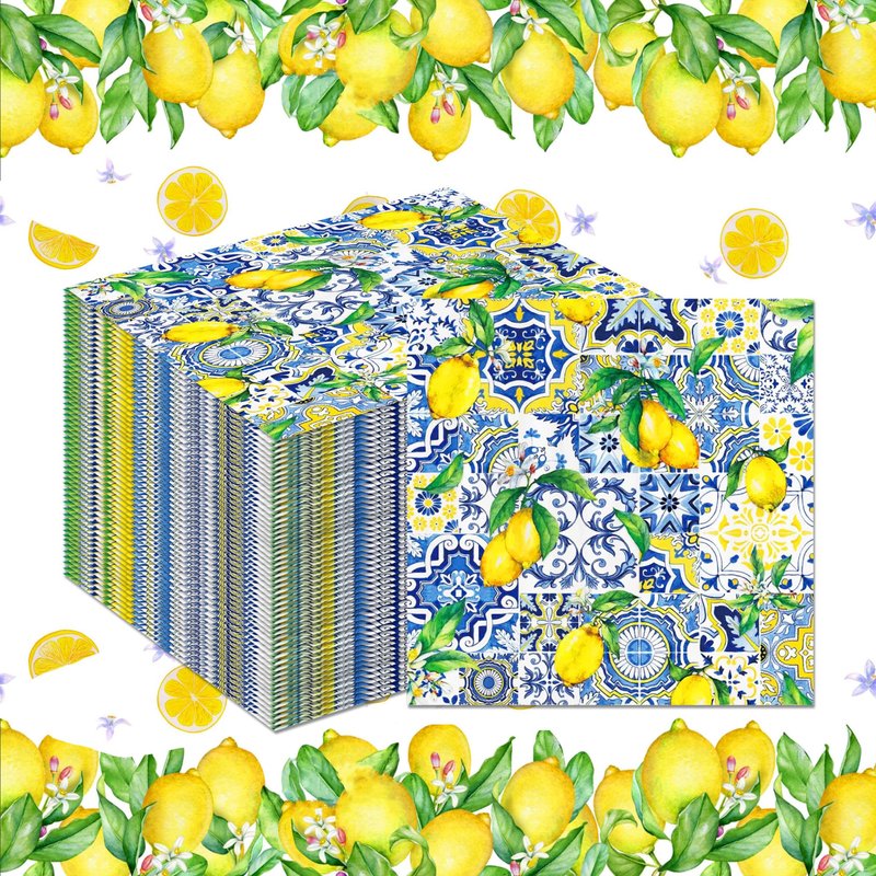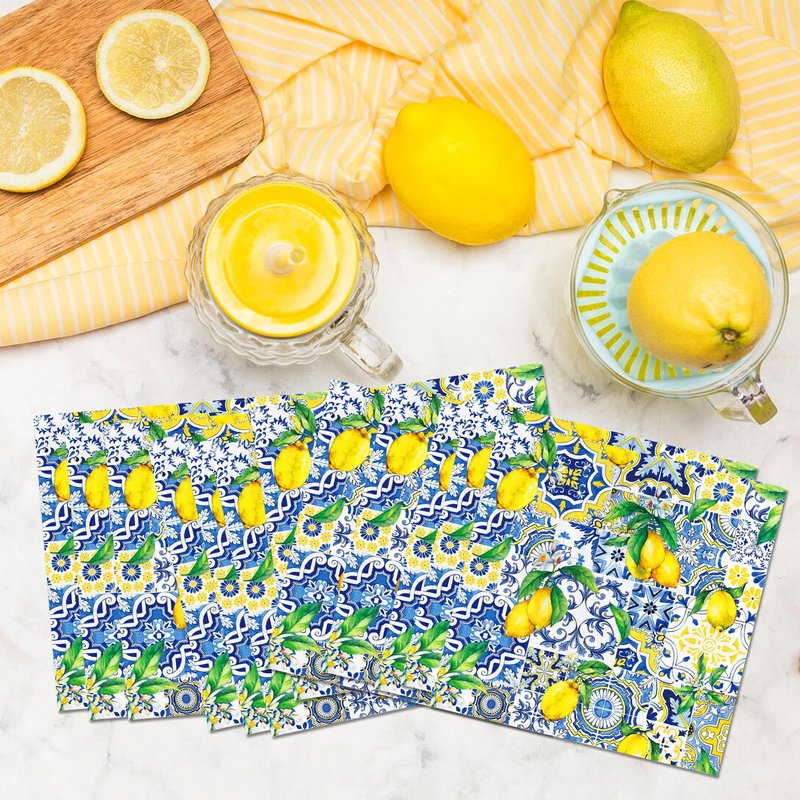- HIGH QUALITY MATERIAL: Our Blue Tiles Print Lemon paper napkins are made of high quality paper, soft and comfortable, strong absorbency line, not easy to tear when using, can keep your table free from spilled beer, juice, soda and food, it is a good helper for you to clean.