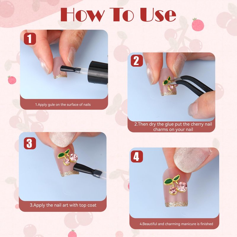 - 【Easy to Use】Just clean the fruit charms surface of the nail, apply a layer of primer, stick on the charm's nails, and apply another layer of primer to fix the diamonds for nail ornaments. Whether you are a novice in nail art or an experienced professional, our small nail charms are easy to use.