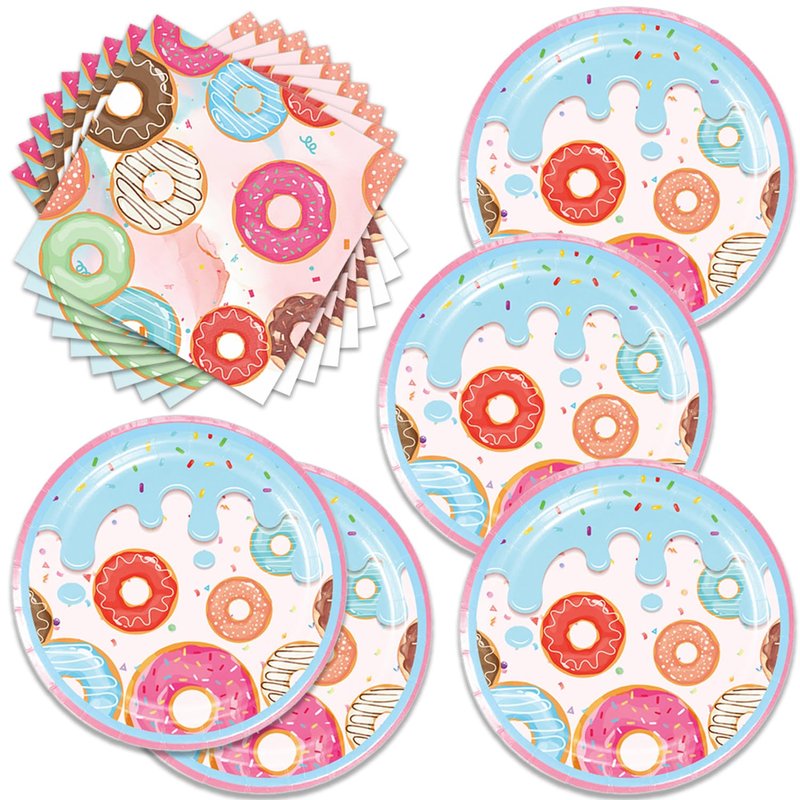 40Pcs Donut Party Supplies include 20 plates, 20 napkins for the Doughnut Birthday Party Decoration