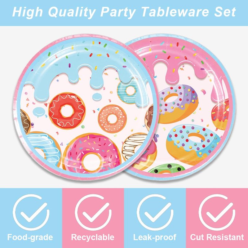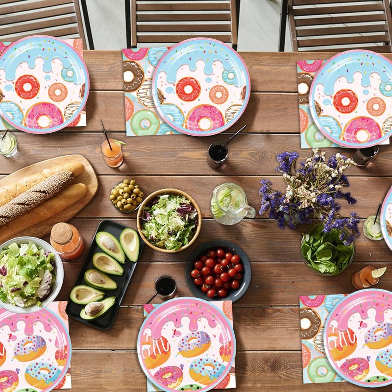- Donut The set includes:20 Donut dessert plate and 20 Donut Napkin party tissues,suitable for 20 guest family Party.