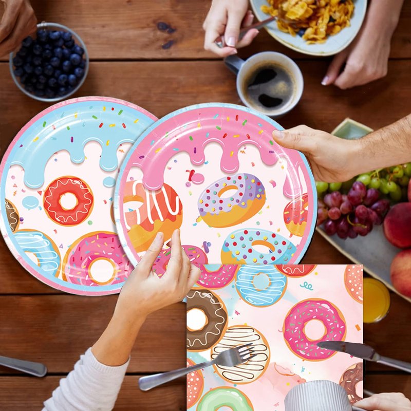 - 【donut Design】This donutparty plates and napkins made of doughnut elegant design,which can provides a cute atmosphere and gives party guests a sense of happy