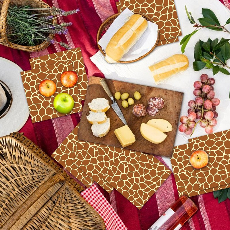 - 【Proper Size】:This Giraffe Print decorations paper napkins set includes 6.5 inches long by 6.5 inches wide folded, and 13 inches long by 13 inches wide when unfolded, this size makes for a nice experience, easy to carry and wipe, adding excitement to an unforgettable dining experience for you and your guests.