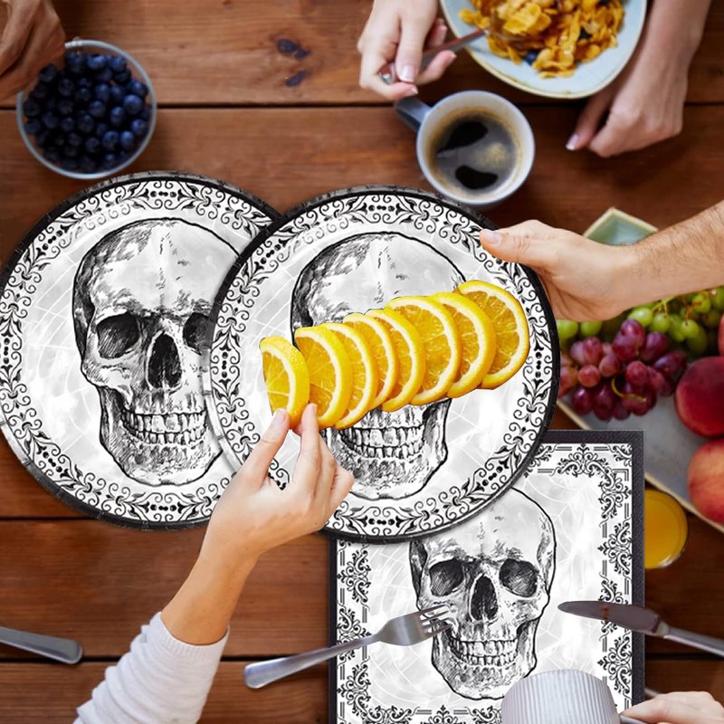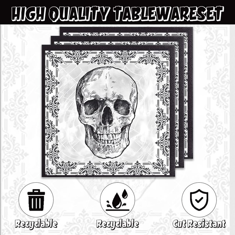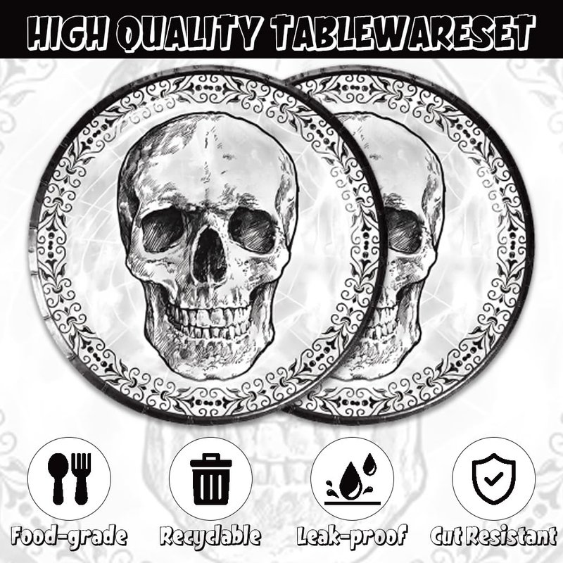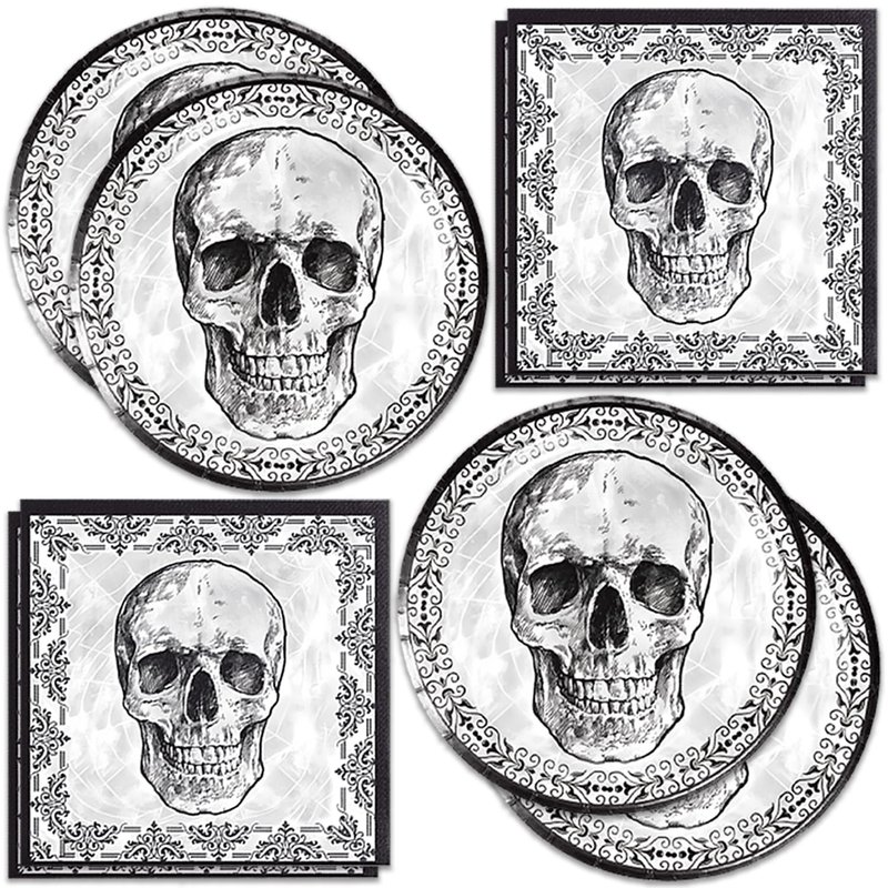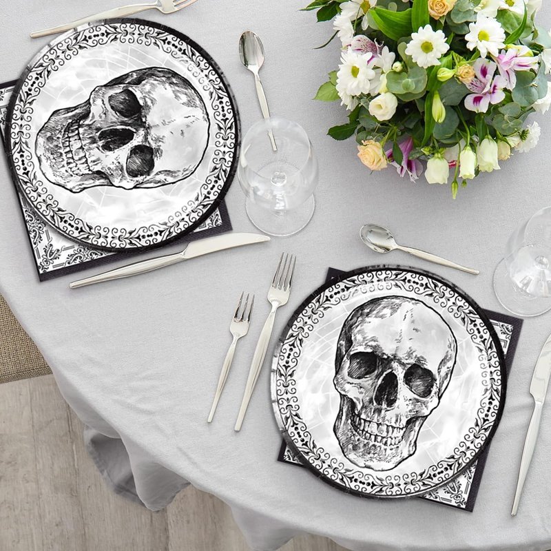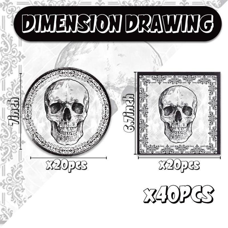 40Pcs Halloween 2024 Party Supplies 20 Plates + 20 Napkin Halloween Birthday Party Decorations (Halloween Skull)