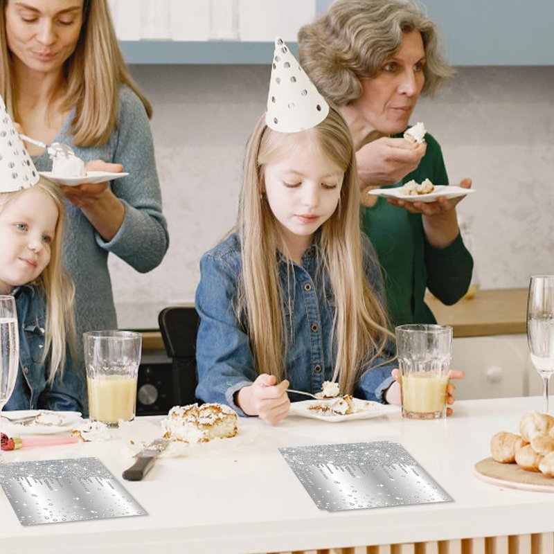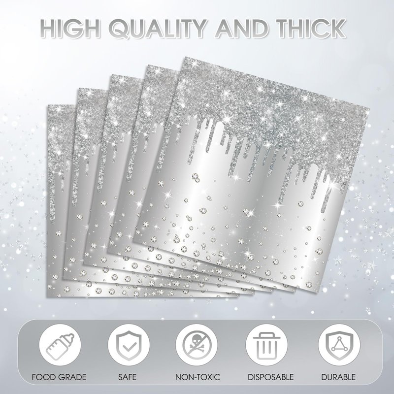 - High Quality: Silver napkins disposable are made of high-quality wood pulp material, soft and highly absorbent, no fragrance additives, food-grade ink is safe and healthy, and can be safely in contact with food.Silver party decorations will provide you with a comfortable dining experience for your guests.