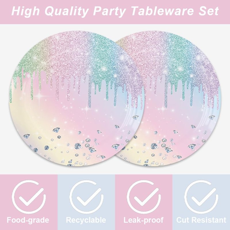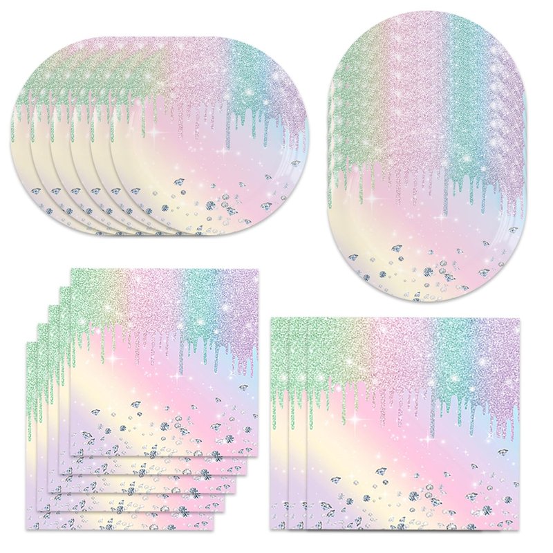 - birthday The set includes:birthday 20pcs Iridescent Diamond dessert plate and 20pcs Iridescent Diamond party tissues,suitable for 20 birthday guest family Party.