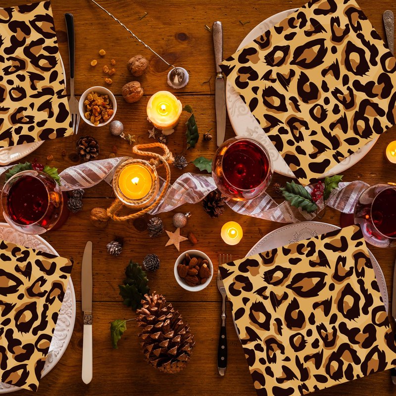 - 【Proper Size】:This Leopard Print decorations paper napkins set includes 6.5 inches long by 6.5 inches wide folded, and 13 inches long by 13 inches wide when unfolded, this size makes for a nice experience, easy to carry and wipe, adding excitement to an unforgettable dining experience for you and your guests.