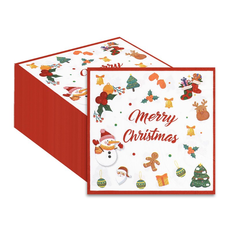 - 【UNIQUE DESIGN】:Our disposable napkins are designed with the theme of Merry Christmas, and then with snowman, Christmas tree, bells, elk, gingerbread man and other patterns, which is simple and clear. It has a unique and charming appearance that stands out among many napkins. This ingenious wood pulp napkin not only has a cleaning function, but is also a practical decorative item that is unique and stylish, adding beauty.