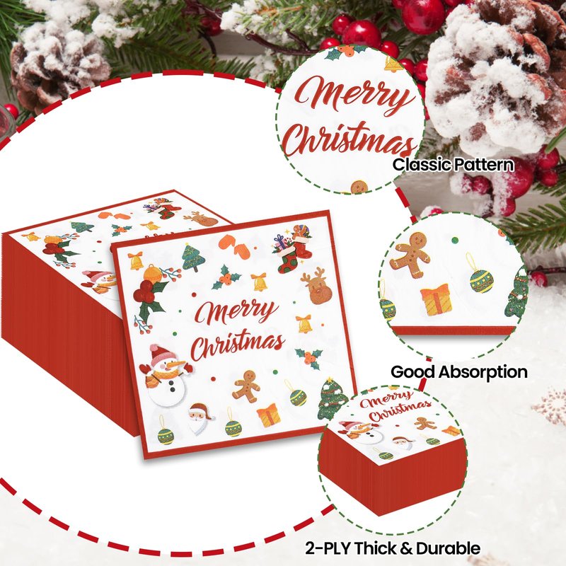 - 【WHAT YOU GET】:You will receive a set of 40 napkins decorated with Merry Christmas patterns for your Christmas or other themed parties. A sufficient number of napkins will allow you to focus on the party fun and immerse yourself in the party.