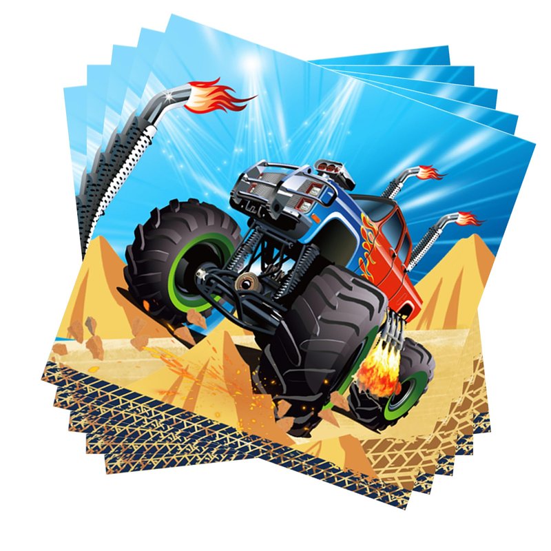 This Monster Truck decorations paper napkins set includes 6.5 inches long by 6.5 inches wide folded, and 13 inches long by 13 inches wide when unfolded, this size makes for a nice experience, easy to carry and wipe, adding excitement to an unforgettable dining experience for you and your guests.