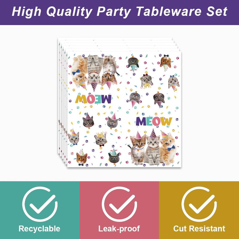 - Quality and design: Design: We use Pet Cat birthday theme design to let you get different compliments at the party. Quality: We use strict food-grade paper materials, strict quality control, high-quality napkins are soft, strong in water absorption.