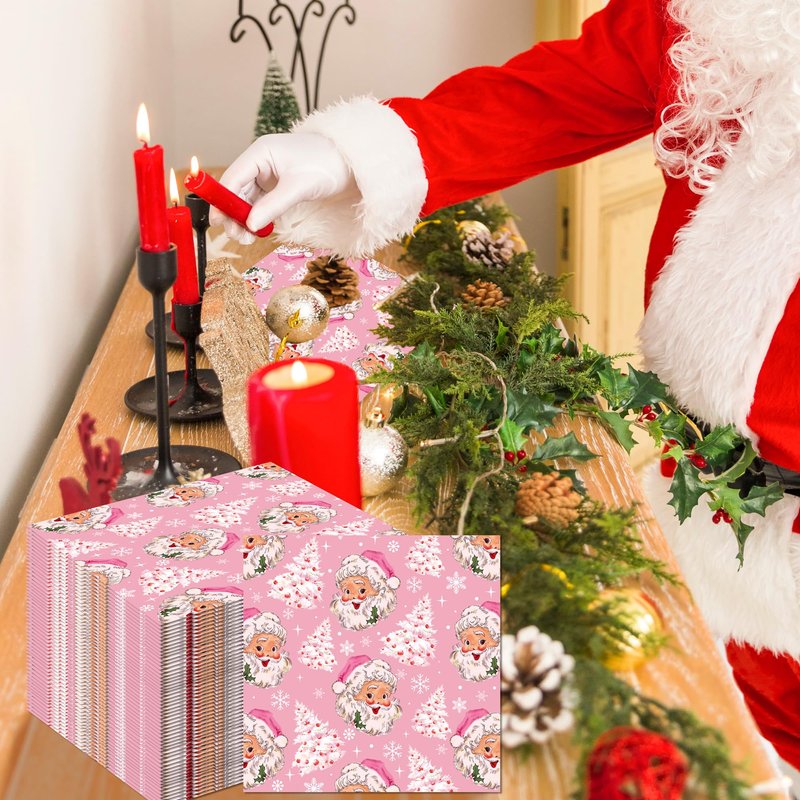 - Pink Christmas Party Supplies: This Merry Christmas Napkins packs is all designed with Pink Santa Xmas Tree Snowflake themed, these Pink Christmas Napkins are the perfect Xmas Winter Holiday party collection decor and are a great way to create an inspiring table escape with friends and family. which is an essential decoration to create memorable Christmas theme birthday baby shower party atmosphere.
